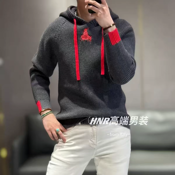 Erkek yüksek kaliteli kablo kazak işlemeli teknikleri jakarlı dantel düğmeler ekip boyun sonbahar kış tiftik yarım baskı